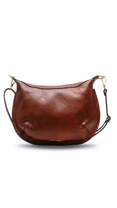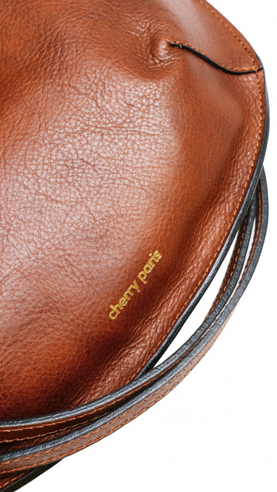 Sac bandoulière porté croisé forme semi-lune en cuir de vachette