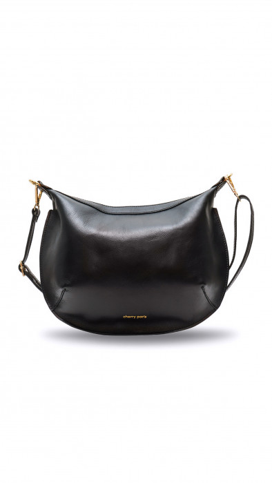Sac bandoulière porté croisé forme semi-lune en cuir de vachette