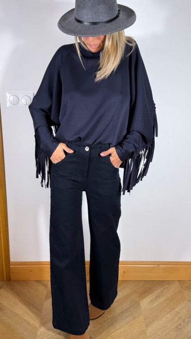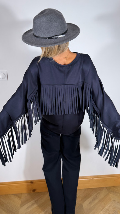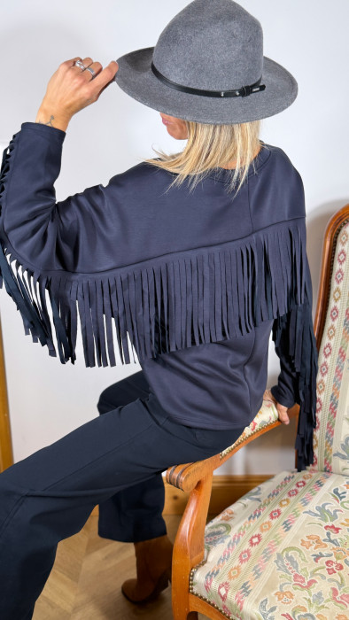 Ajoute une touche western à ton look avec ce sweat original à col rond, rehaussé de franges façon cowboy sur les manches et dans le dos.