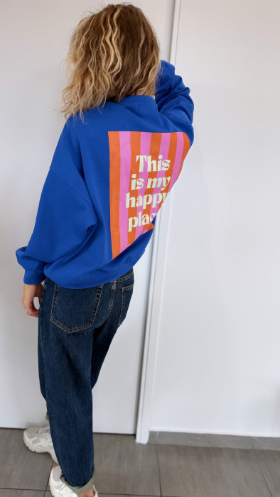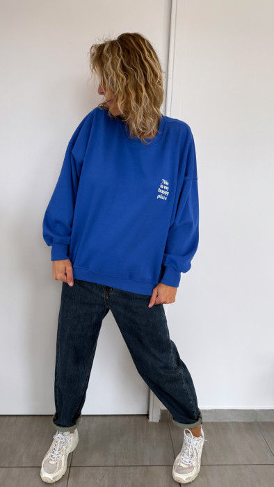 • Sweat oversize de couleur bleu royal très tendance, coupe basic et col rond standard.