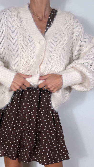• À porter ouvert sur un caraco en dentelle, ou fermé comme un pull pour un look cocooning :