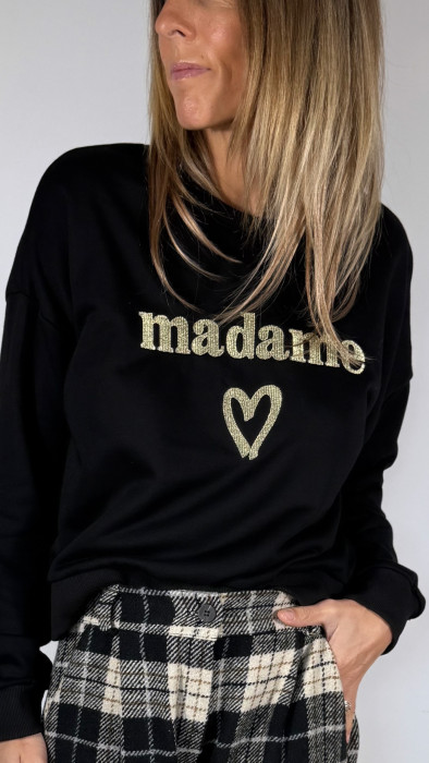• Sur la poitrine, une délicate broderie « Madame » en fil d’or apporte une touche raffinée et féminine.