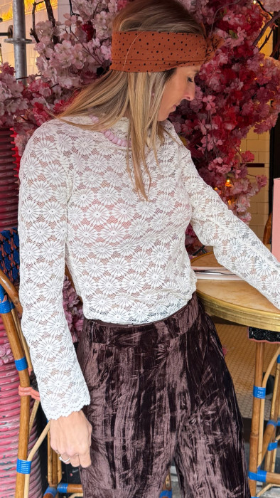• Élégant et délicat, ce top en dentelle de coloris vert anis illumine instantanément votre tenue.