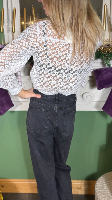 • Sublimez votre look avec cette chemise blanche délicate, où la transparence et la dentelle se combinent pour un style élégant et féminin.