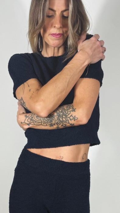 • La matière est cosy, douce et cocoon, légèrement duveteuse à l’intérieur, idéale pour se sentir enveloppée et relaxée, que ce soit à la maison ou pour un look casual urbain.
