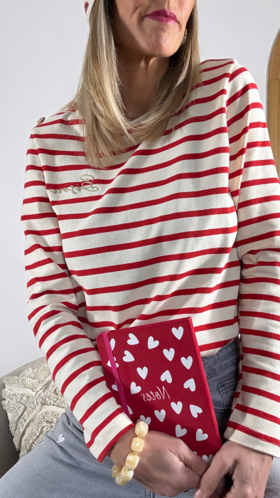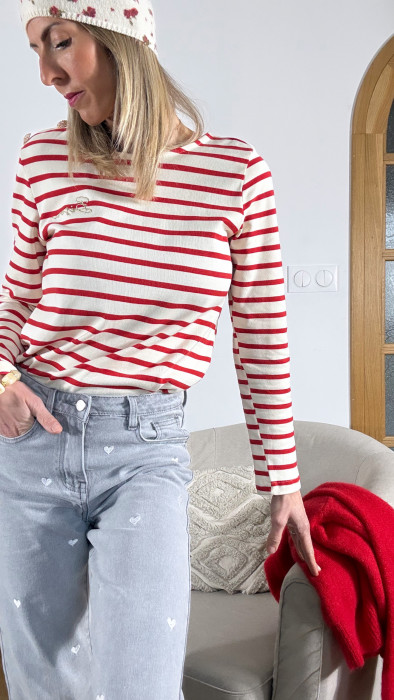 TOP MARINIÈRE BISOUS ROUGE