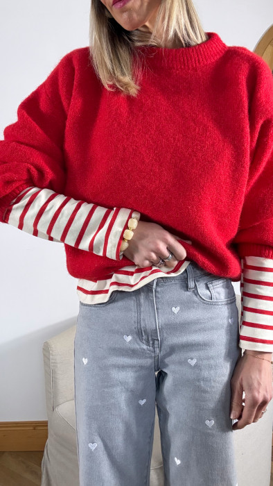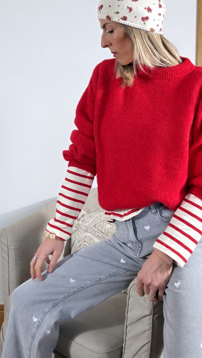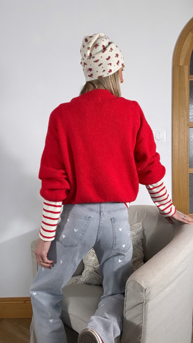 - Ce pull rouge intense est une véritable invitation à se blottir dedans.