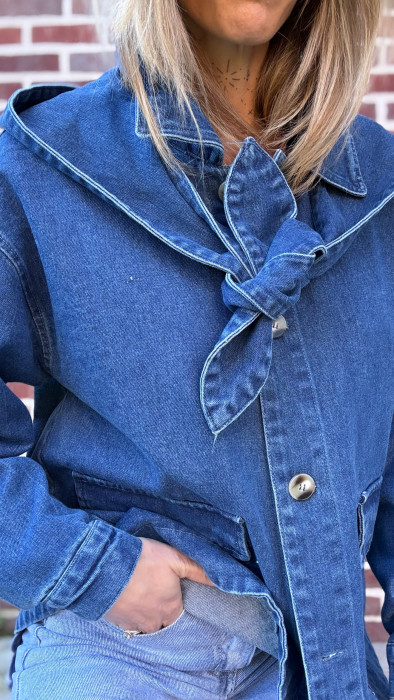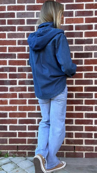 • La capuche intégrée, dans le même denim brut, apporte une touche casual et urbaine.