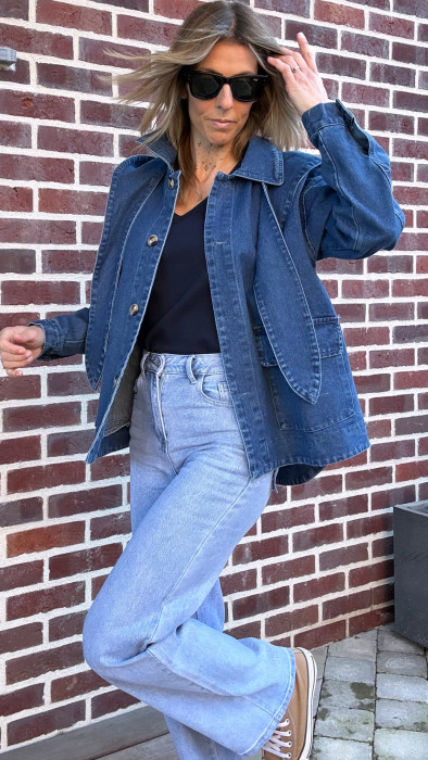• L’ensemble donne une pièce hybride : entre l’élégance du trench et l’esprit brut et authentique du denim, parfaite pour la mi-saison et facile à porter avec un pantalon tailleur, une robe fluide ou un simple jean pour un total look assumé.