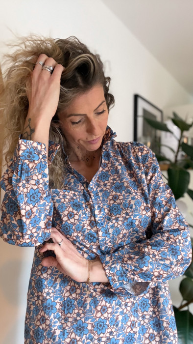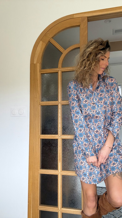 • Une robe courte à la coupe droite, inspirée de la chemise, confectionnée en coton léger et agréable à porter.