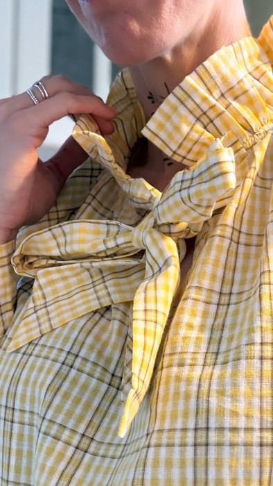 • Une chemise au style très tendance dans un coloris jaune à carreaux légers.