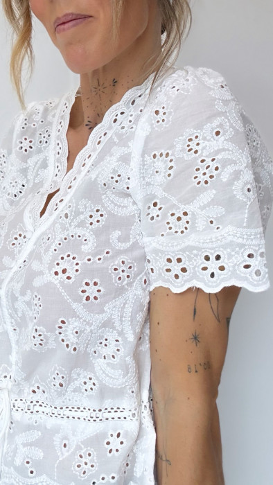 • La dentelle est au cœur de la pièce : fine et travaillée, elle laisse apparaître la peau en transparence, créant un effet léger et raffiné. Selon le motif, elle peut apporter une touche romantique, voire légèrement bohème, tout en restant élégante.
